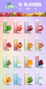 LIMI 8000口一次性電子煙提供超大容量,適合重度使用者。內置 550mAh 電池與 15ML 煙油,提供長達 8000口 的使用體驗。可充電,使用完畢即可拋棄。